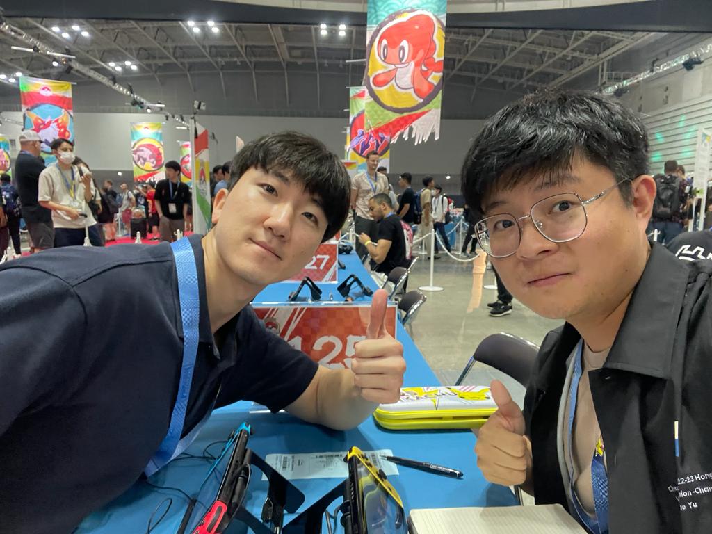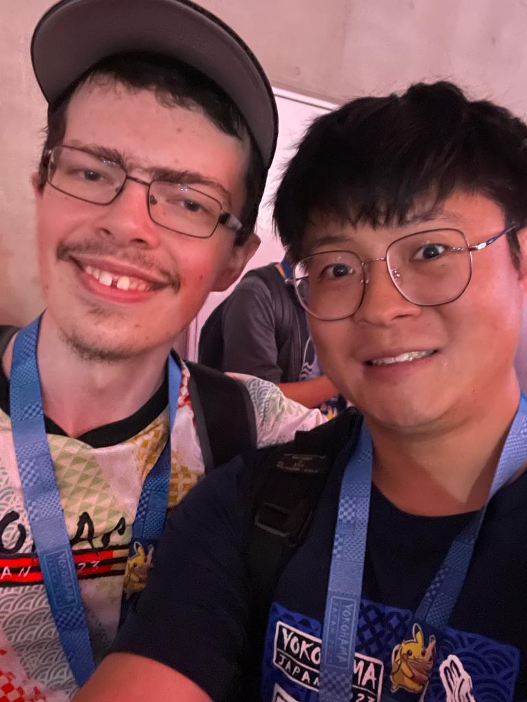 - 今次世賽可以跟一些著名選手打卡例如James Baek, Wolfe Glick,和台灣選手們打招呼,更被日本電視台訪問我們香港選手,懂日本的我最終得到和19年世界冠軍Naoto Mizobuchiiペンギン會面。都算是作為VGC小粉絲值得炫耀的事情。