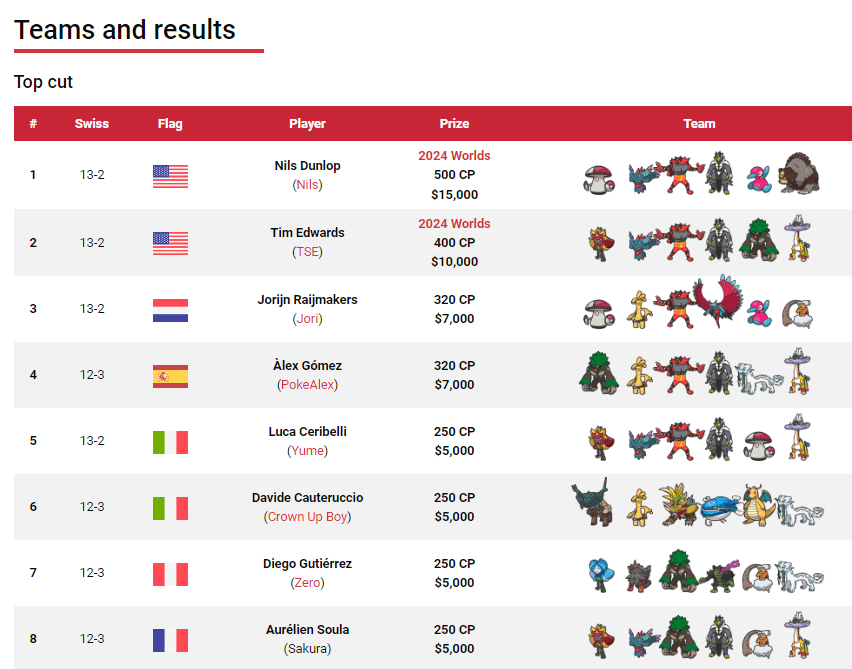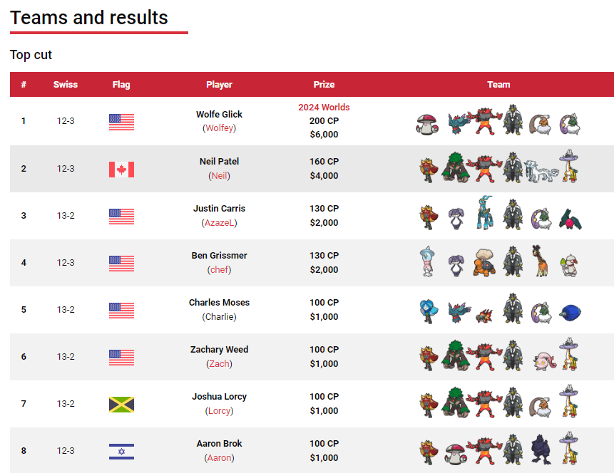 - 隊伍是在EUIC前的Vancouver Regional賽中的4強Scott Iwafuchi隊伍,多邊獸2火貓草菇軸和強化型轟鳴月。
